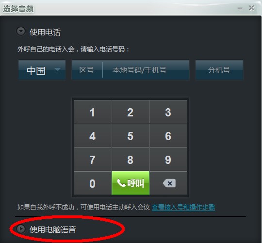 3. 在选择音频界面选择“使用电脑语音”,进入远程会议系统,即看到遥控界面,登录成功。
