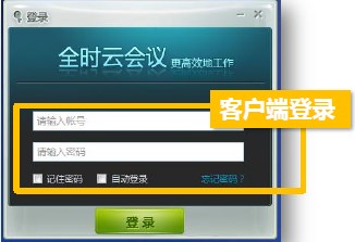 2. 双击桌面云会议客户端进入会议,在登录框中输入您的账号以及密码进行登录(账户名和密码可来电向教务处教学科索要,联系人:耿晓丹,联系电话:85310331)。