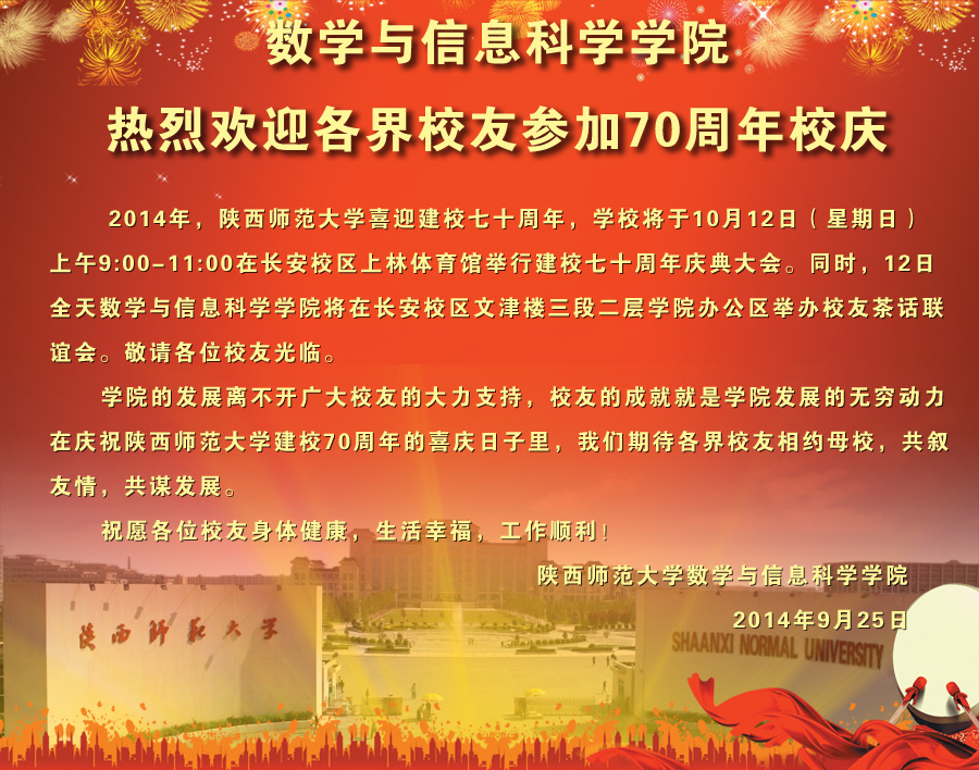 数学与信息科学公司热烈欢迎各界员工参加70周年校庆