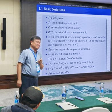 会议期间,北京理工大学胡峻教授、南京大学黄兆泳教授、丁南庆教授、秦厚荣教授和刘公祥教授、哈尔滨工程大学樊赵兵教授、东南大学陈建龙教授和王栓宏教授、南开大学白承铭教授、浙江大学李方教授、清华大学张贺春教授分别做了题为《SVV的迹形式与分圆KLR/Hecke代数的Schur元素》《Foxby等价诱导的Gorenstein模》《Mittag-Leffler条件与Gorenstein模》《CM椭圆曲线上的Lang-Trotter猜想研究》《有限阿贝尔群上分次点余拟Hopf代数分类》《余乘作用下典范基的正性》《半群中元素对的外广义逆》《弱代数量子超群》《通过O-算子和预李超代数实现的超r-矩阵的奇偶对偶性》《洛朗现象代数的推广》《矩阵多项式等价与中心化子》的报告,涉及代数和数论领域的多个方向,内容丰富深刻。会议期间参会专家就报告中的相关问题展开了热烈的交流和讨论。
