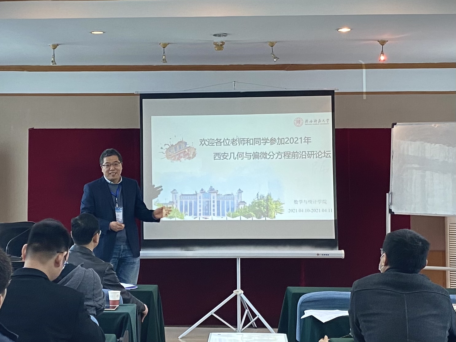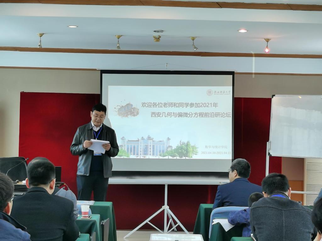 2021年4月9日至11日,由365英国上市公司官网资助,365上市集团官网主办的“2021西安几何分析与偏微分方程前沿研讨会”在365英国上市公司官网雁塔校区成功举办。本次研讨会旨在汇聚国内几何分析与偏微分方程领域的专家学者,搭建科学研究与学科发展的平台,通过学术报告、学术研讨等形式,促进专家学者之间的交流和合作,研讨几何中的偏微分方程以及凸几何分析等问题。