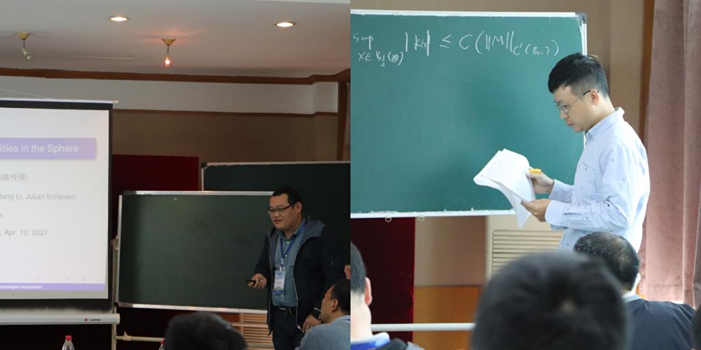 开幕式后,研讨会共进行9场精彩的报告,各位专家从几何中的偏微分方程中解的唯一性、正则性、Liouville定理以及凸几何分析等方面为参会者提供了精彩纷呈的学术视听盛宴。