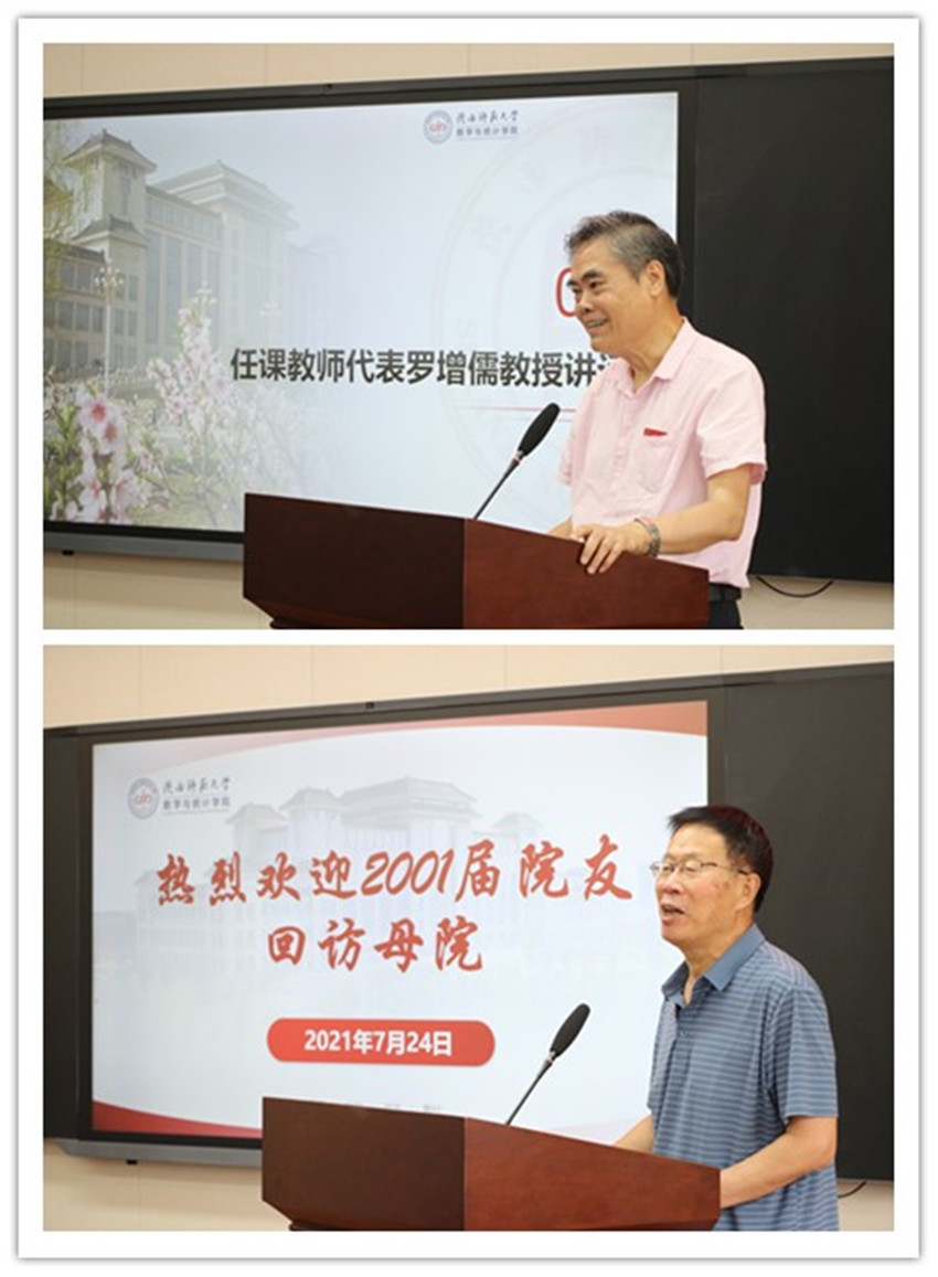 罗增儒、刘新平两位教授作为任课教师代表和院友们共同回忆了当年与同学们的点点滴滴,向院友们提出了时刻关注母校、母院发展的殷切期望并向同学们表示深深的祝福,欢迎院友们常回来看看。