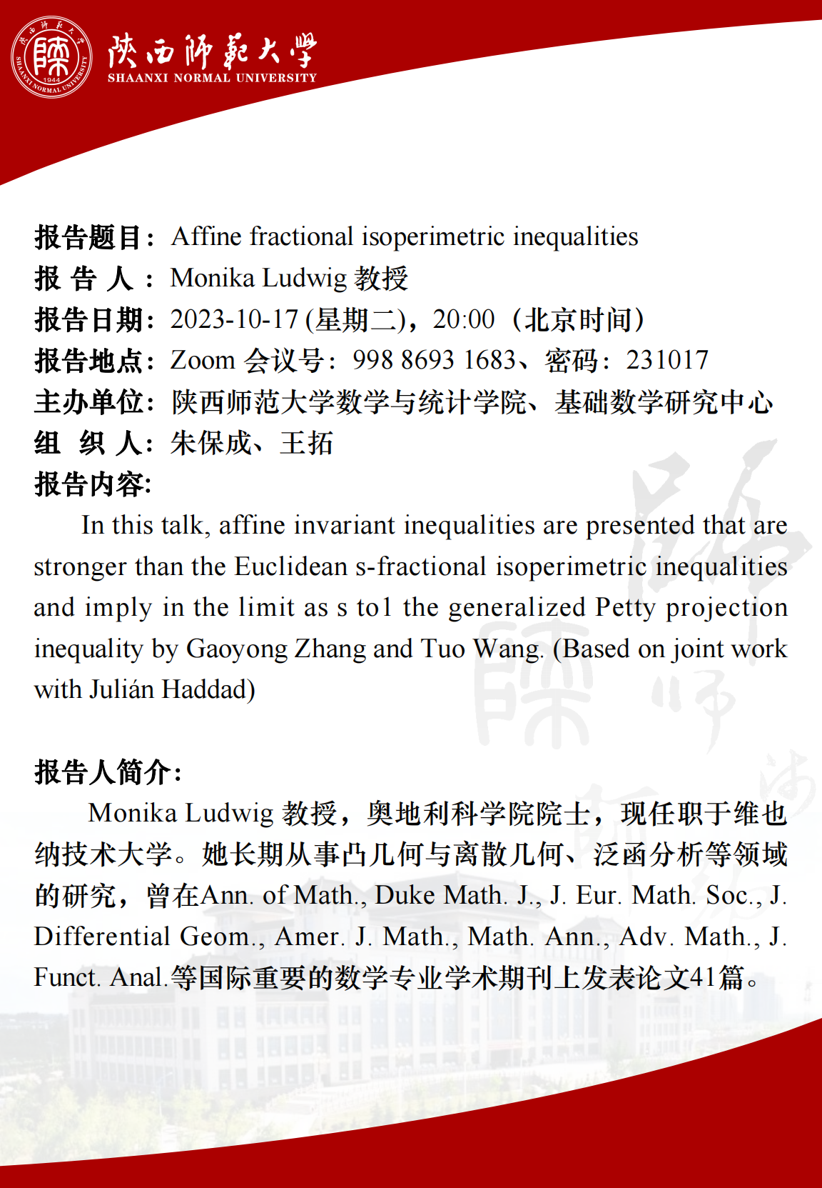 Zoom会议号ID:998 8693 1683