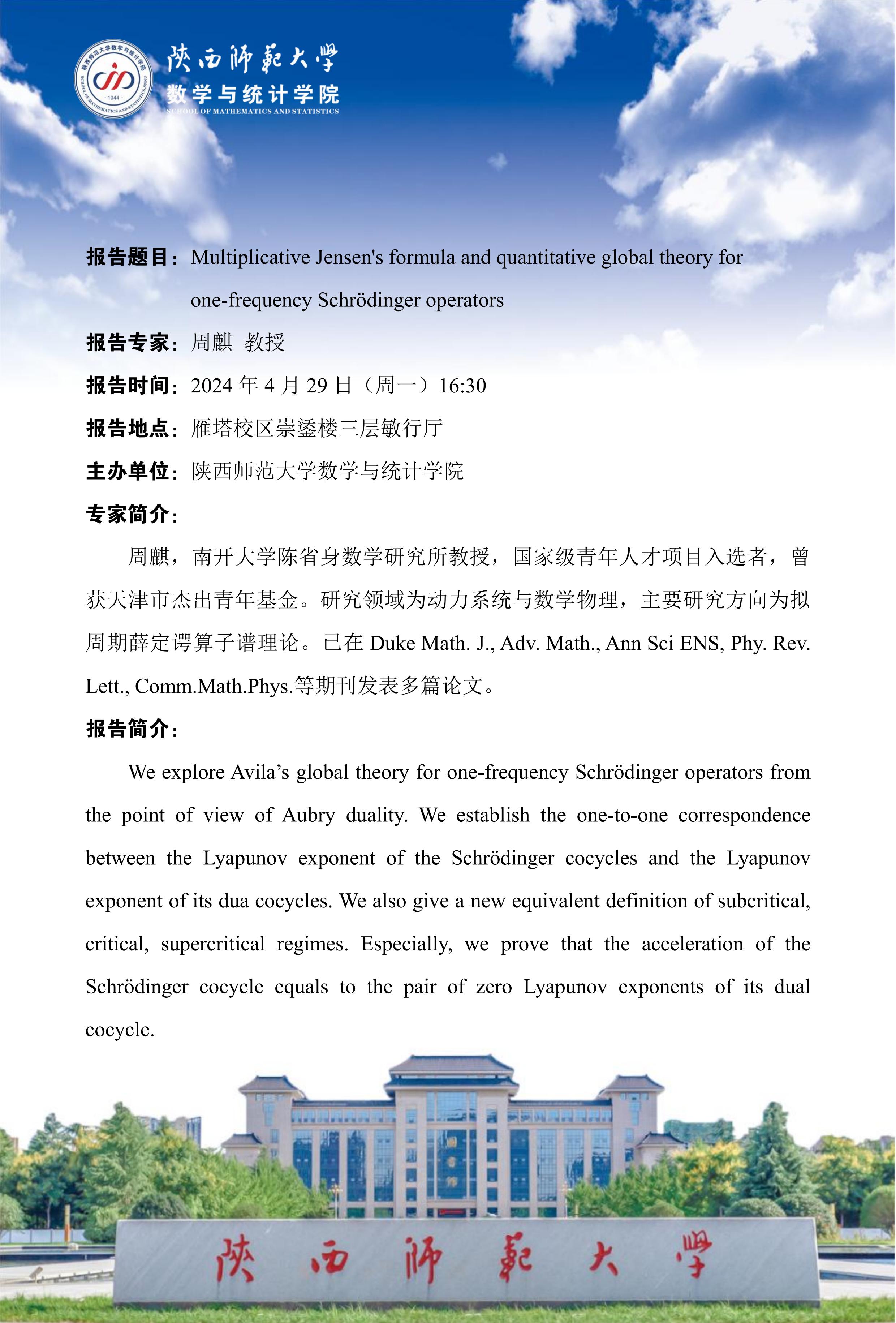 八秩同辉校庆系列24 Multiplicative Jensen's formula and quantitative global theory for one-frequency Schrodinger operators