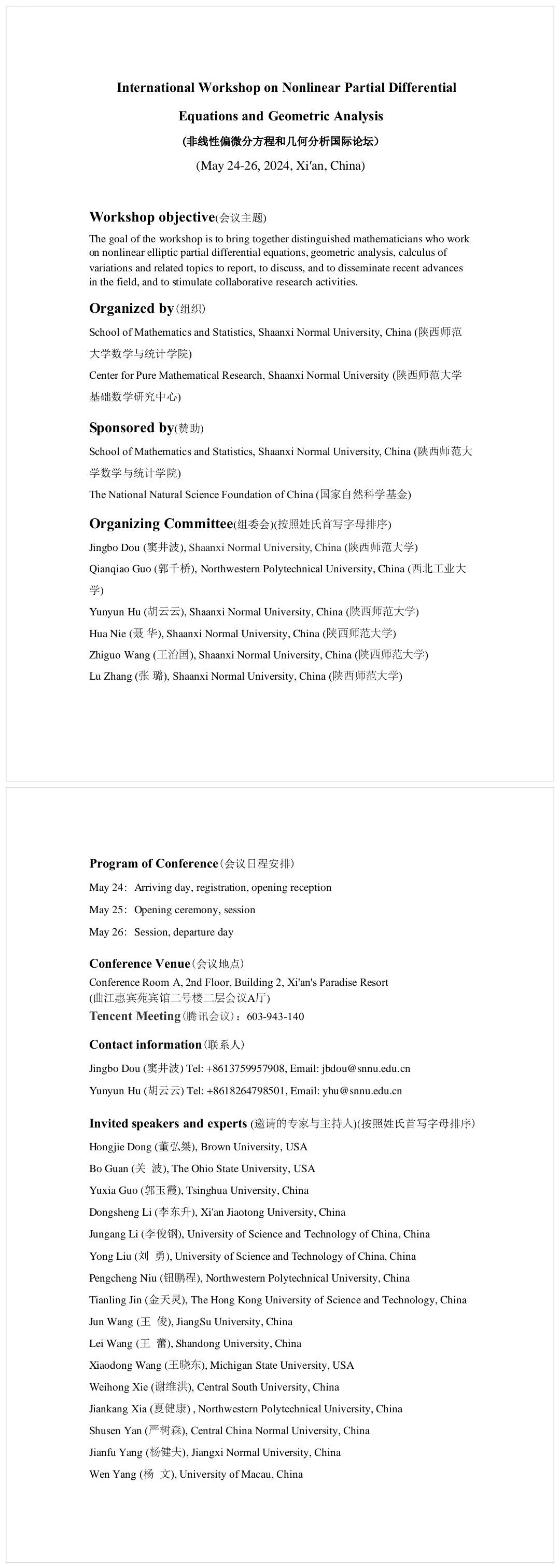 八秩同辉校庆系列43 会议:非线性偏微分方程和几何分析国际论坛