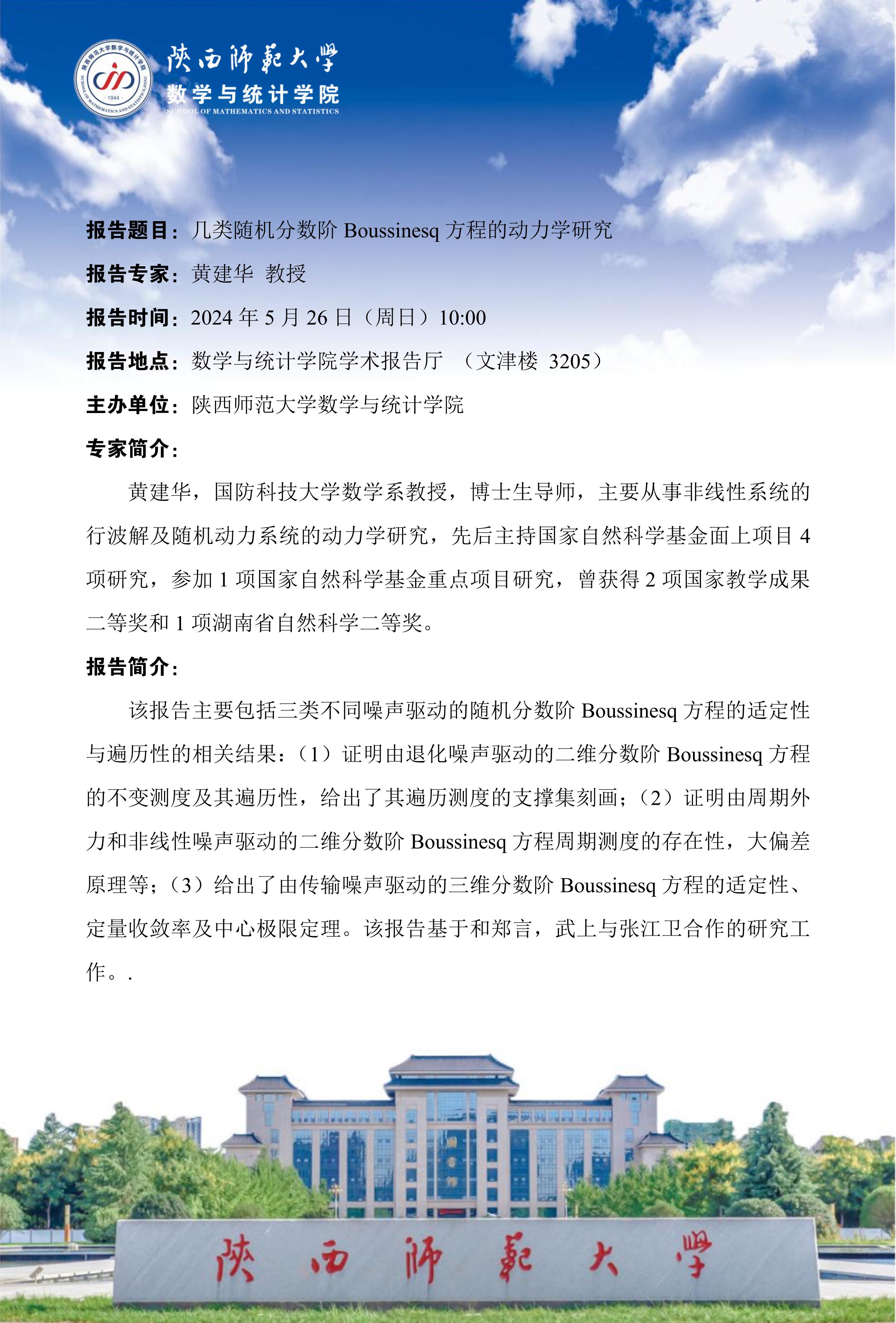 八秩同辉校庆系列45 几类随机分数阶 Boussinesq 方程的动力学研究
