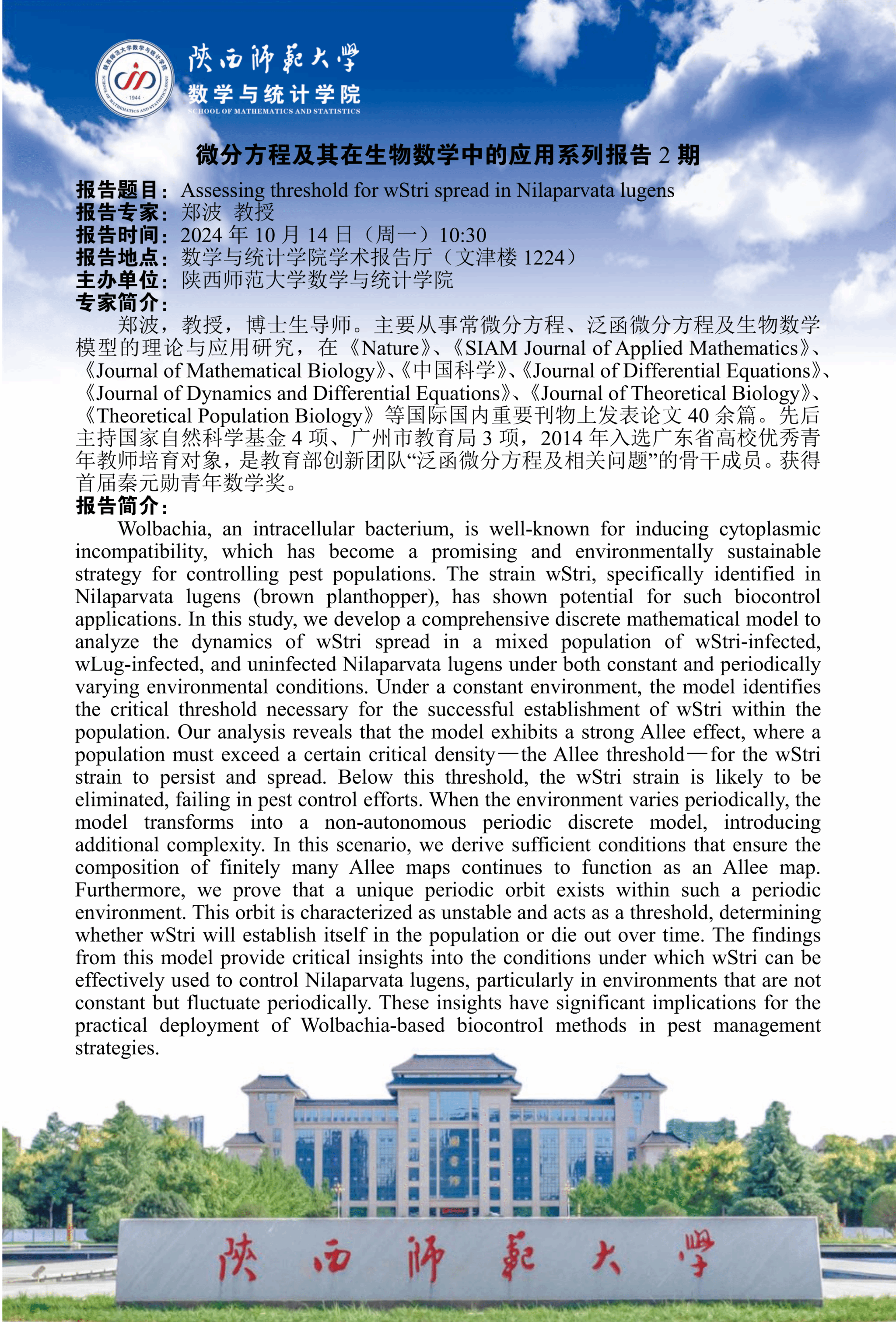 八秩同辉校庆系列95 Assessing threshold for wStri spread in Nilaparvata lugens