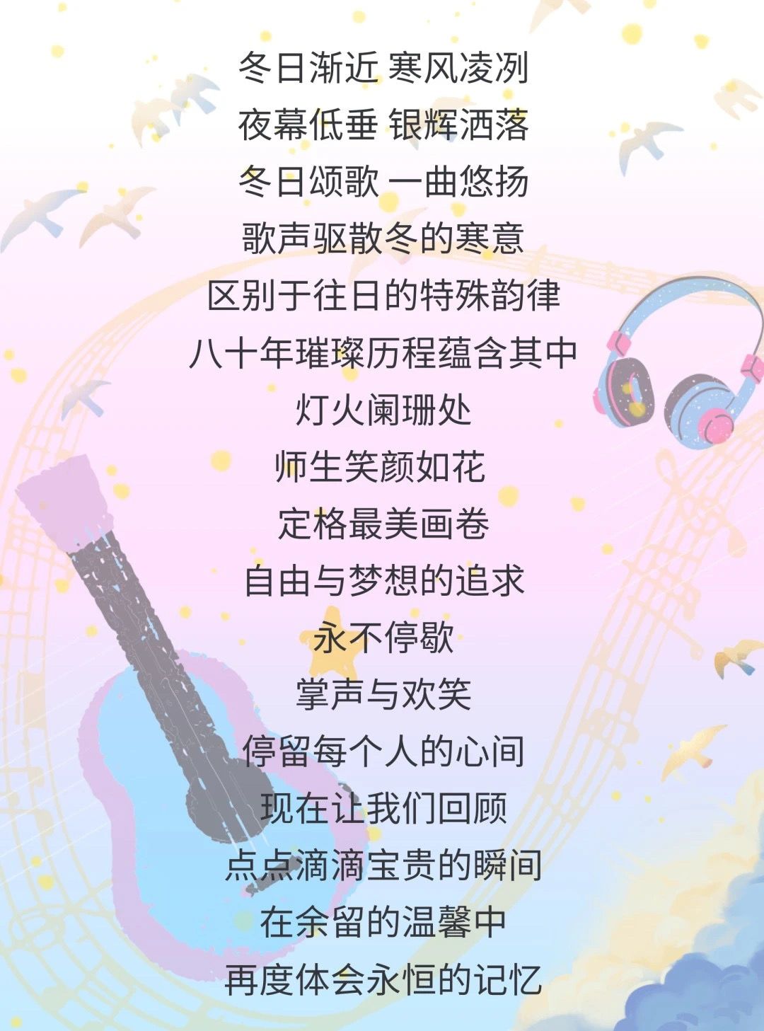 展望未来,让我们以八秩数韵为契机,不断增强历史主动精神和战略思维,书写好以教育强国建设支撑引领中国式现代化的新篇章。以启新程为动力,不断追求严谨、求实、自由、和谐,以更加坚定的信念,迈向未来的广阔天地!