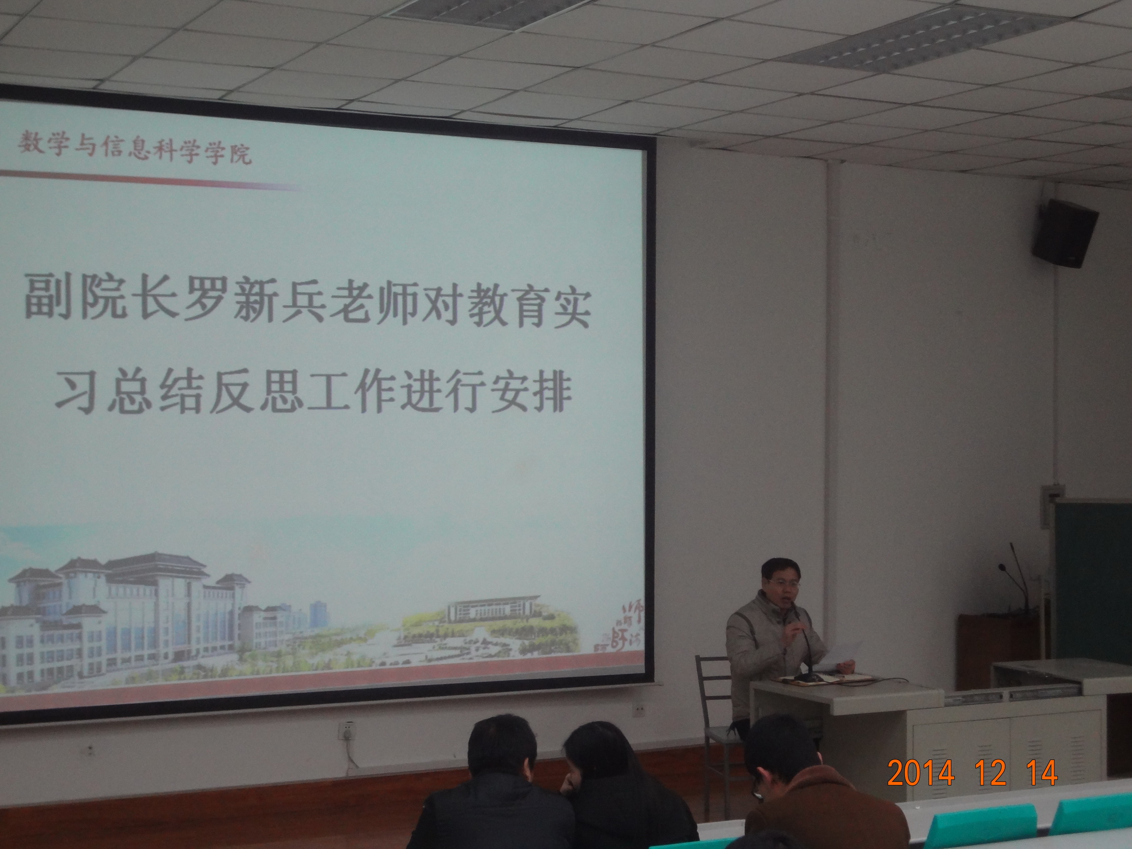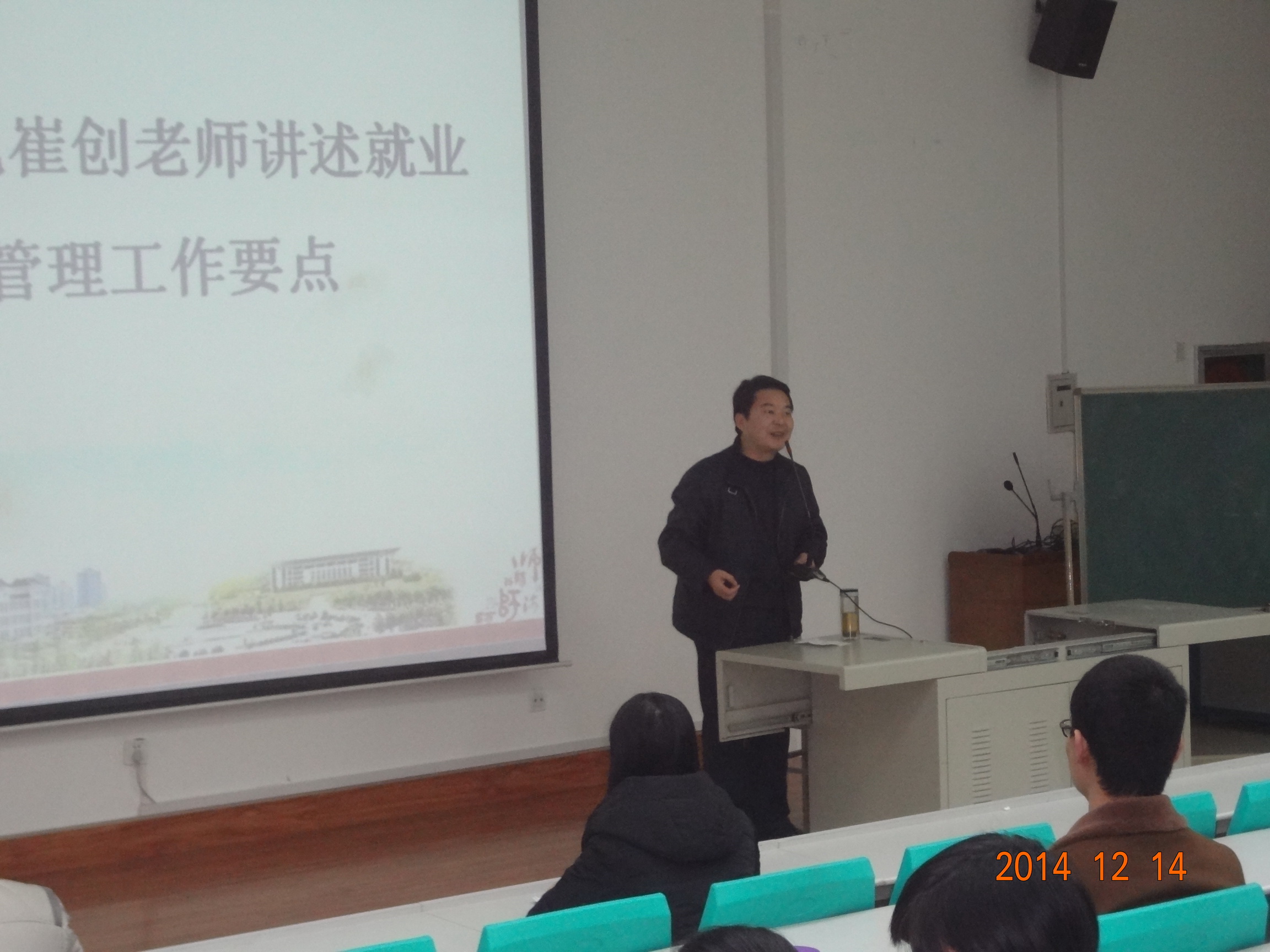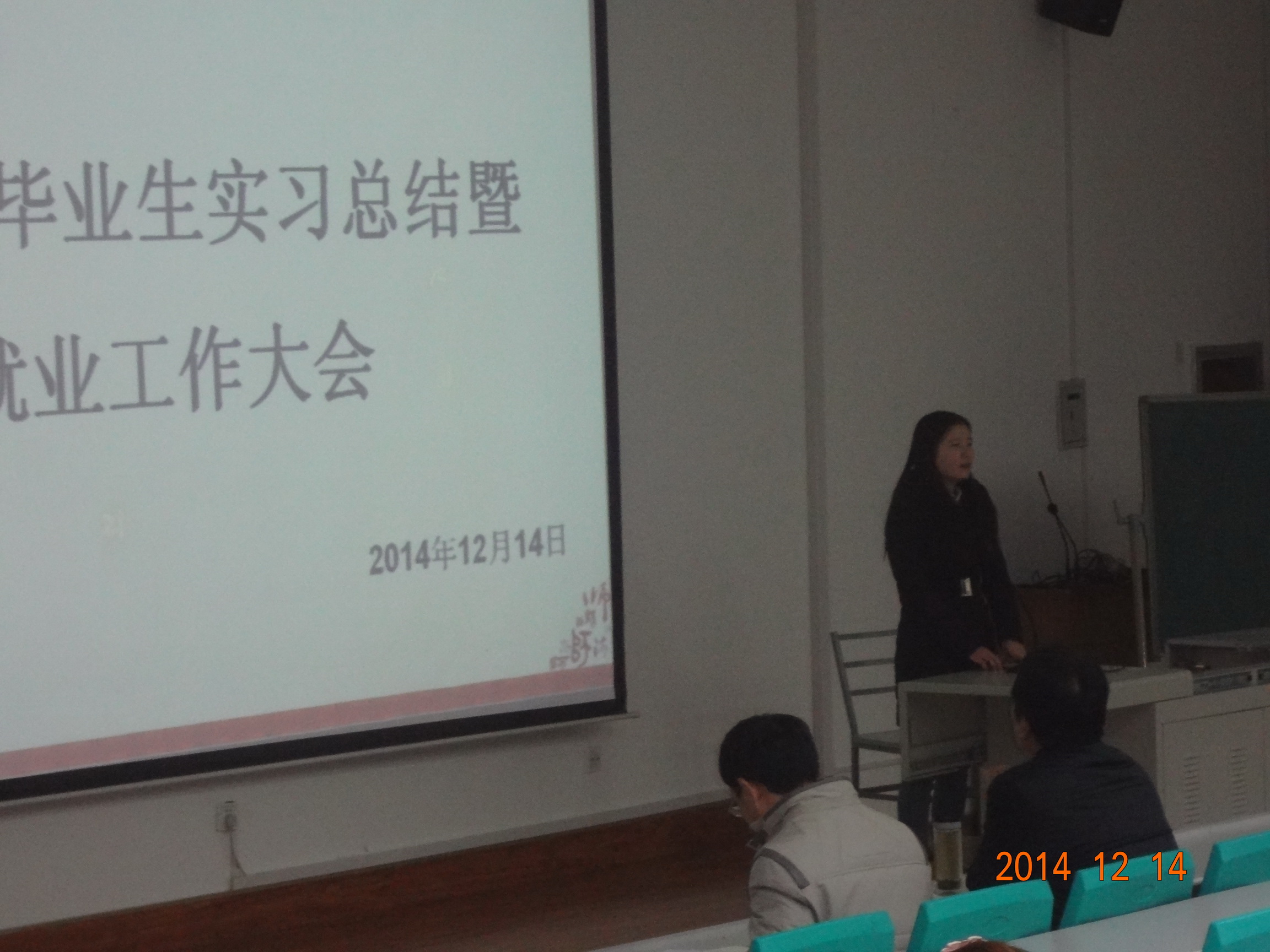2014年12月14日晚,公司于文津楼四段201教室召开2015届本科生大会,就毕业实习总结暨就业工作进行安排动员。院副经理罗新兵、分党委副书记崔创、辅导员曹倩、全体本科毕业生参加会议,辅导员曹倩担任主持。