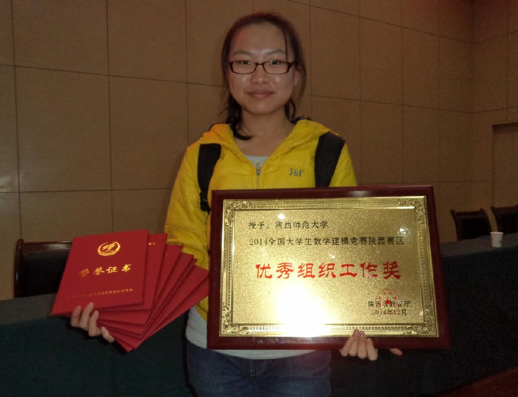 今年公司共有2012级本科生组成的39支参赛队参赛,37支参赛队获奖。其中7个参赛队荣获本科组国家二等奖,29支参赛队荣获陕西赛区奖,公司荣获陕西赛区优秀组织工作奖。获国家二等奖的公司7支参赛队代表李再爽、刘婵娟、范睿、钟鸿琼、张璐、冷波、王春参加了此次颁奖仪式。