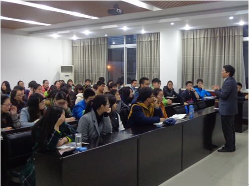 2015年3月25日晚7点,公司本学期第二期教授接待日活动在公司多功能厅举行,吉国兴经理与来自大三、大二的50余名同学共同探讨考研问题。