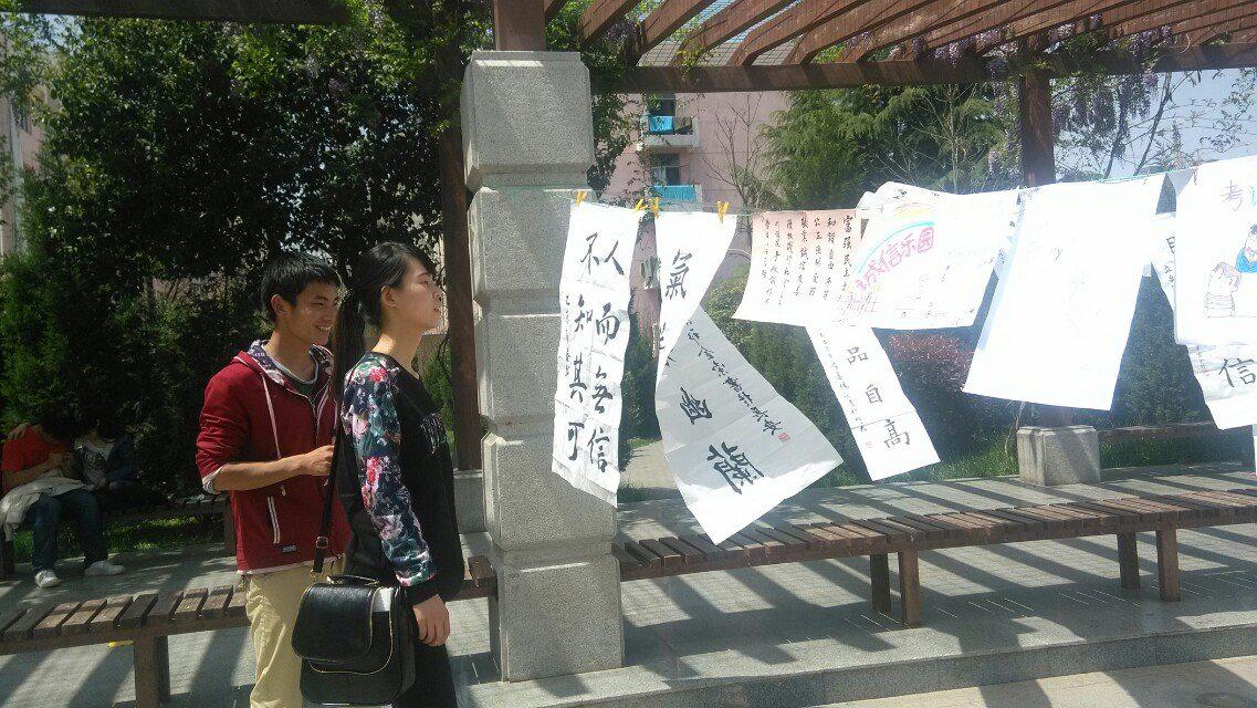 4月是师大诚信教育活动月,为积极响应公司号召,2015年4月15日,数科院2013级数学二班在长安校区阳光苑门口举办了诚信教育主题书法、漫画、手抄报联展活动,旨在大力宣扬校园诚信理念。