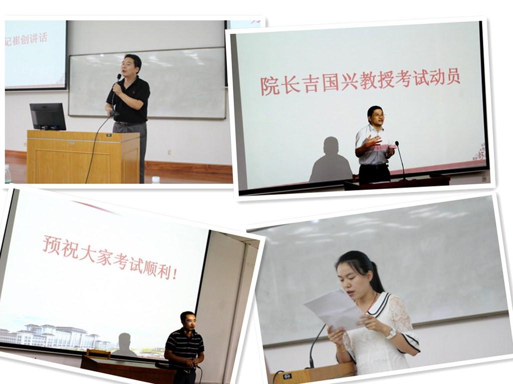 会上,首先由经理吉国兴对广大同学进行考试动员。他从八个方面对同学提出要求和希望:一是充分认识期末考试重要性;二要排除干扰,认真备考;三是遵守考场纪律;四是按时参加考试,牢记考试时间地点;五是遵守考场规则;六要尊重监考,服从安排;七是携带相关证件;八要自觉规避风险,切勿碰撞考纪“红线”。