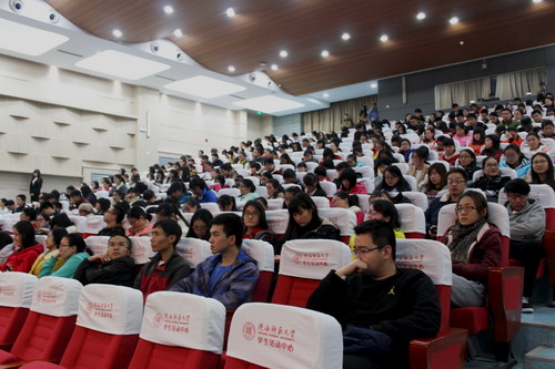 接着,杜鸿科教授以《学习和研究的一些体会,和老员工们谈心》为题,为同学们做了一场关于如何做科研、如何学好数学的精彩报告。他首先鼓励同学们积极参加科研项目,要求同学们进入角色,独辟蹊径,善于发现问题,勤于思考,不怕失败,不断总结经验,同时做好研究笔记,并且要注重团队精神。接着,他给同学们如何过好老员工活提出了一些建议:希望大家学会自我管理,充分利用大学丰富的人文资源和信息资源发展自己,不做手机的奴隶,持之以恒,扎实学习,为未来迎接挑战做好准备。