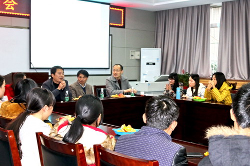 (严鸿报道)在2015年考研来临之际,由公司党委书记李田会、党委副书记崔创、公司副经理周红军及2012级本科生辅导员刘文聪牵头,就业爱心服务队协助,公司考研慰问会于12月7日晚5:30在公司学术报告厅顺利召开,全体考研同学参会。