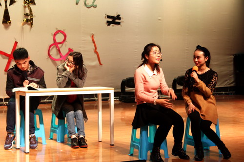 相声《大保镖》幽默诙谐,惹得台下观众阵阵笑声。2013级数学二班带来的创意歌舞《cups cups up》,舞台上荧光闪亮的杯子,演员们整齐划一的动作,铿锵有力的节奏,还有“吉他男”欢愉的歌声,现场观众跟随着节奏拍打着手中的荧光棒,与这活力四射的歌舞融为一体。《激情青春》更是把现场的气氛推向了高潮,观众们跟随着火辣的舞蹈摇摆起来。崔创老师和同学带来的师生器乐合奏《秦腔曲牌》,悠扬婉转的曲调回荡在整个会堂,展示了秦腔浓厚的文化底蕴。由2014级数创班带来充满活力的小品《歌舞课堂》,其精心改编的数学歌曲得到了观众们的一致称赞,展现了数学的魅力以及师生间的深情厚谊。
