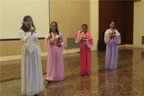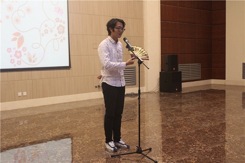 随后,师生同献艺,共话大联欢。马力克、张宁、陈魁三位老师分别给同学们带来了精彩绝伦的演唱,扎实的唱功赢得阵阵喝彩。崔创老师的板胡表演娴熟深情,张弛有度。吕九如教授为本次大赛题字:“桐花万里丹山路,雏凤清于老凤声。”寓意中华戏曲文化的传承与发扬要靠青年员工。黄义妨等四位同学为大家表演了黄梅戏《女驸马》选段,现场其乐融融,热闹非凡。