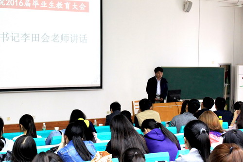 5月27日下午,我院在文津楼四段202教室召开2016届毕业生教育大会。经理吉国兴、党委书记李田会、副书记崔创及2016届全体毕业生参会,会议由本科毕业生辅导员刘文聪主持。