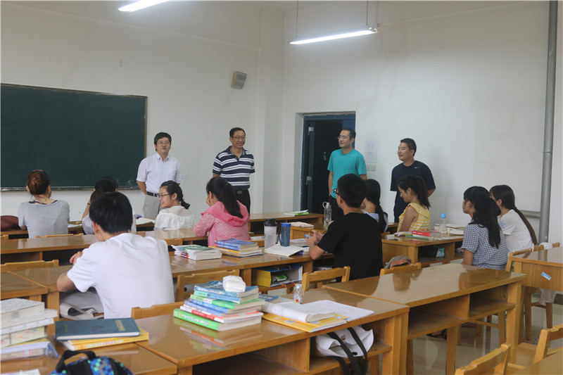 8月8日上午,经理吉国兴、党委书记田安政、副书记崔创、团委书记邹尚田前往考研教室看望并亲切慰问公司暑期留校备考的2013级本科生。