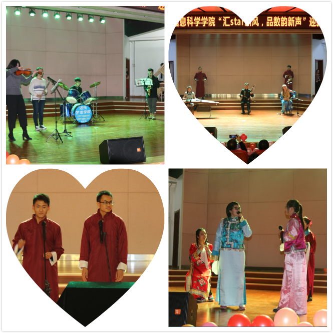 it》点燃全场,同学们热情洋溢。接着由马星星等同学表演的对口相声《享受生活》,博得了全场掌声。袅袅余音的民乐演奏、欢笑满堂的纳新小品彰显出我们数科学子的多才多艺。接下来丰富多彩的歌曲串烧,让同学忘我沉醉。而中间的游戏互动环节也通过答题抽奖的方式带动了全场气氛,微信弹幕、滚动抽取幸运观众等多样的参与方式以其极高的趣味性吸引大家积极参与其中。