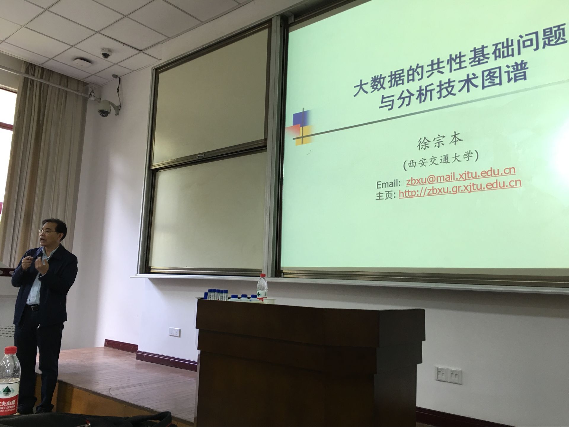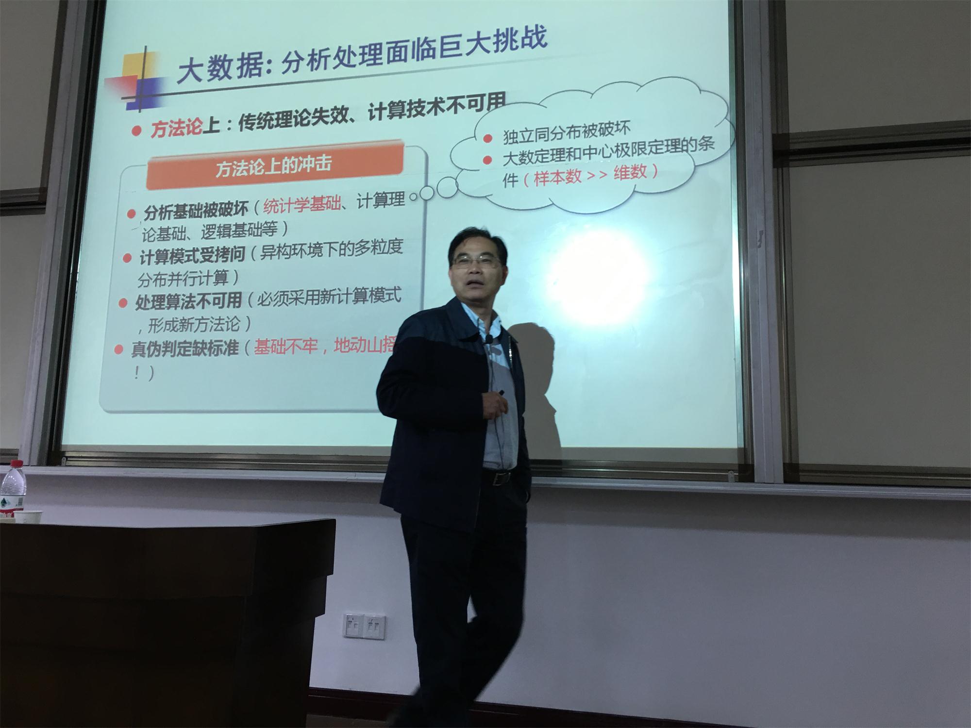 首先,徐宗本院士作了题为《大数据的基本问题与分析技术图谱》的特邀报告,徐院士的精彩课题和生动讲课技巧深深地吸引了在场的所有同学,激发了同学们学术讨论的热情。