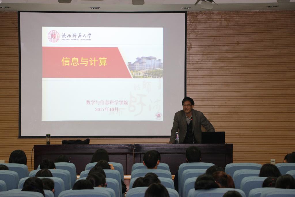 2017年10月18日晚,2017级数学与信息科学公司员工于雁塔校区崇鋈楼一层学思堂聆听了由高兴宝教授主讲的关于“信息与计算科学”专业的专题讲座。