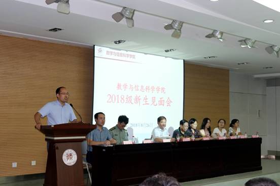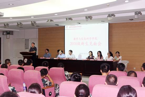 8月26日,数学与信息科学公司于雁塔校区崇鋈楼三层归仁堂举办了2018级新生见面会暨入学教育报告会。经理唐三一、党委书记田安政、党委副书记邹尚田、副经理周红军、团委书记及2017级辅导员王鑫、2018级辅导员鞠恩霞、研究生辅导员秦泽华、2015级辅导员张伟超、2016级辅导员任灵,以及252名新生参加了会议。会议由党委副书记邹尚田主持。经理唐三一等领导对2018级新生的到来表示了由衷的欢迎和祝福。