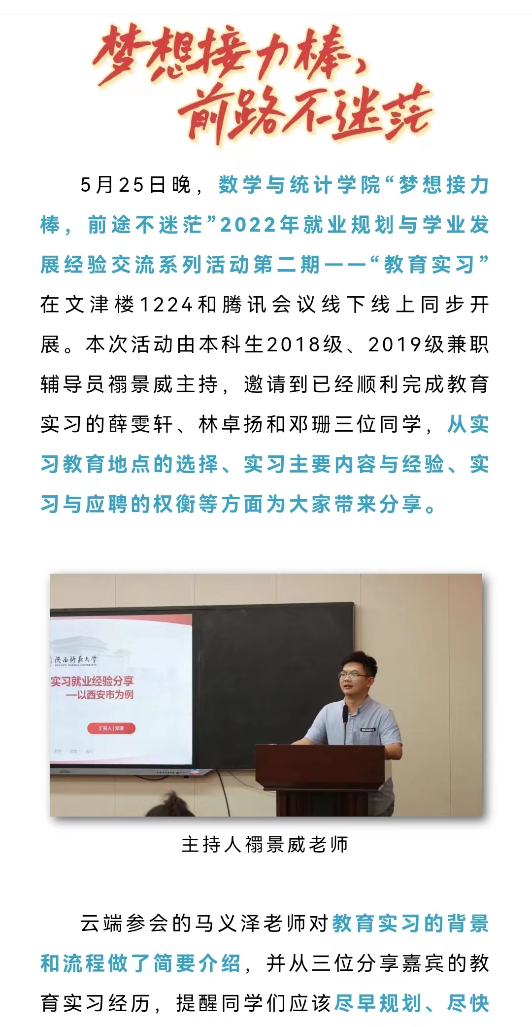 “梦想接力棒,前路不迷茫”之“教育实习”顺利举行