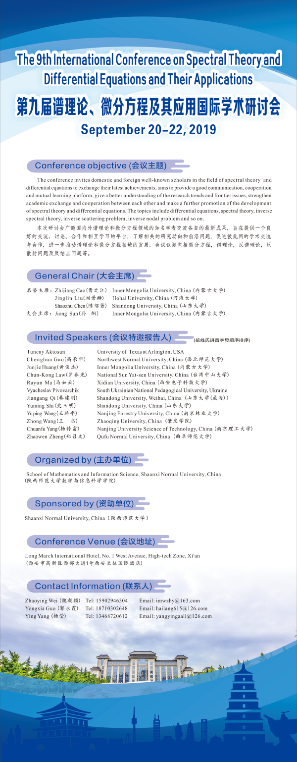 第九届谱理论、微分方程及其应用国际学术研讨会