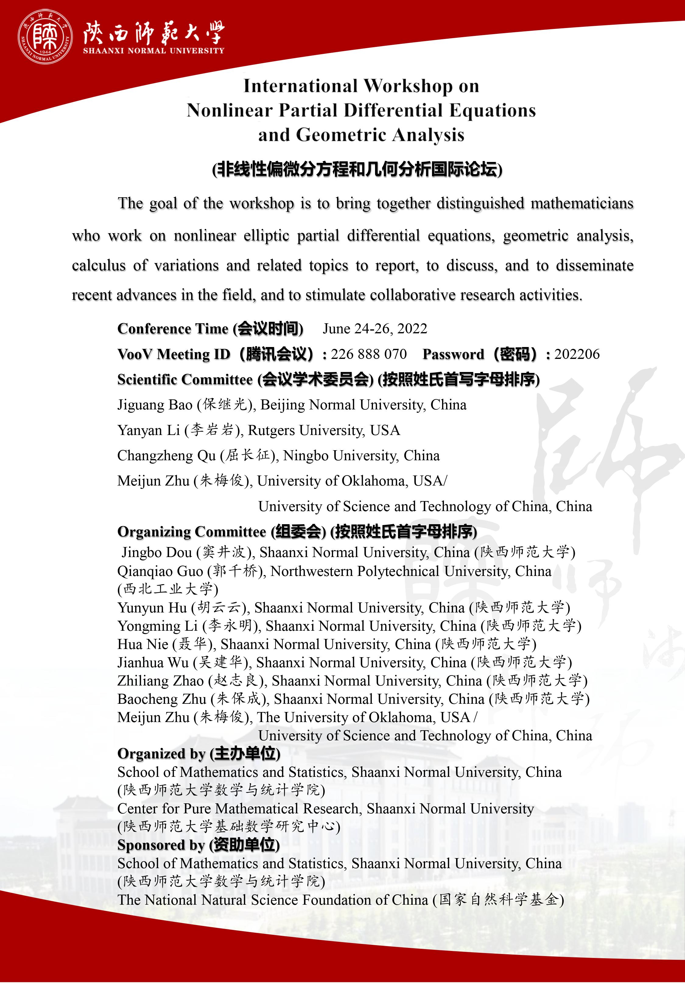 2022年非线性偏微分方程和几何分析国际论坛